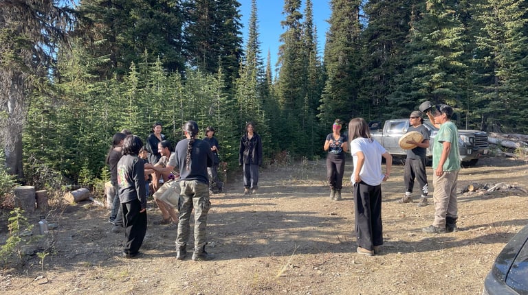 We believe in learning directly from the tmicw (the land). Participants learn through experience and careful observation—how to read tracks, understand the seasons, and identify medicines and foods. This hands-on approach ensures that traditional ecological knowledge is passed on in the environment where it belongs, building practical skills and a deep, personal connection to our territory, Secwepemcúlecw